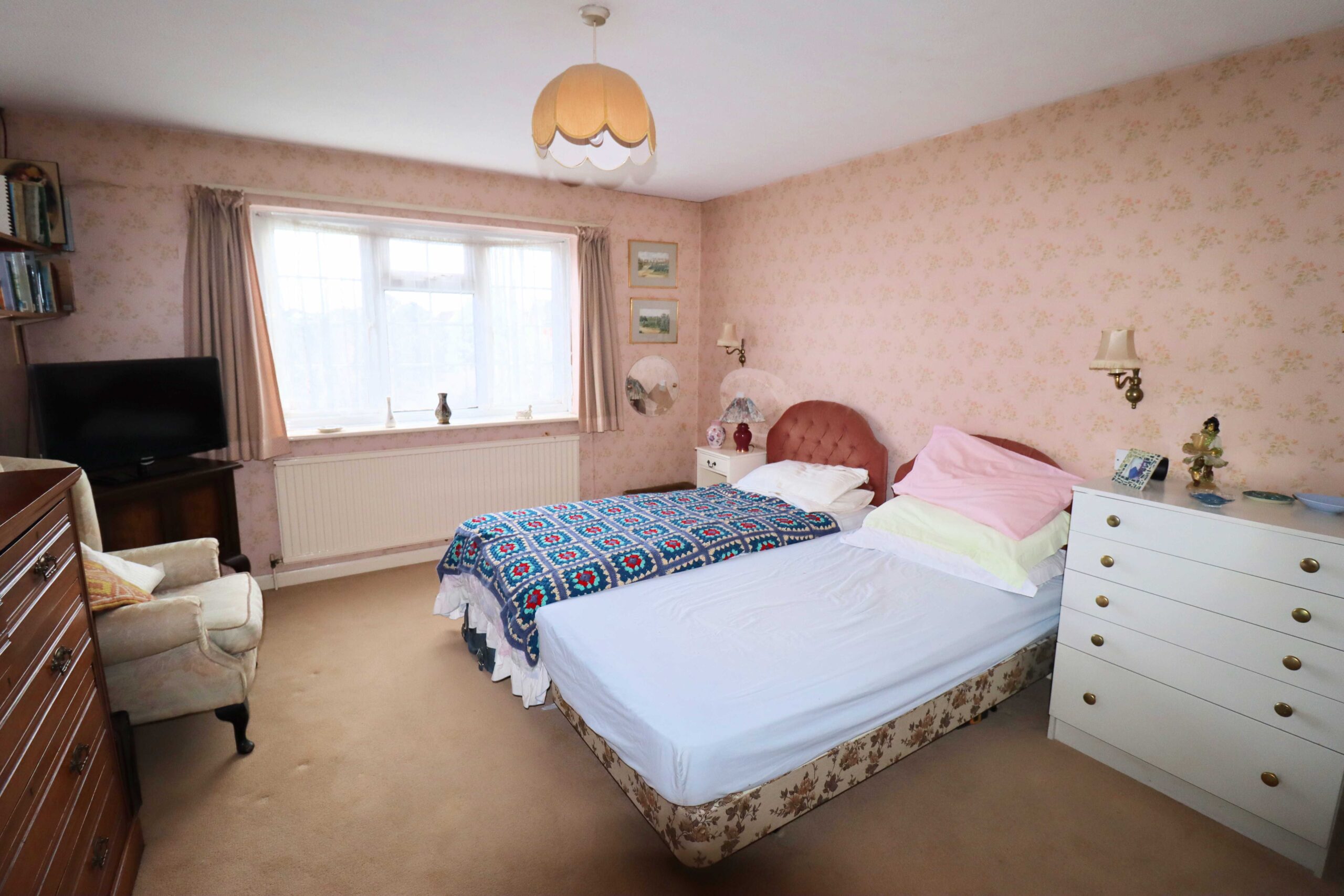 13’10” x 11’11” (4.24m x 3.64m) Wide UPVC double glazed window to the rear. Radiator. Television point. Double door built in wardrobe. Two wall lights. Dimmer switch.