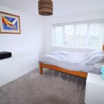12’8” x 9’11” (3.85m x 3.03m) Wide UPVC double glazed window to the front. Double door built in wardrobe. Radiator. Dimmer switch.