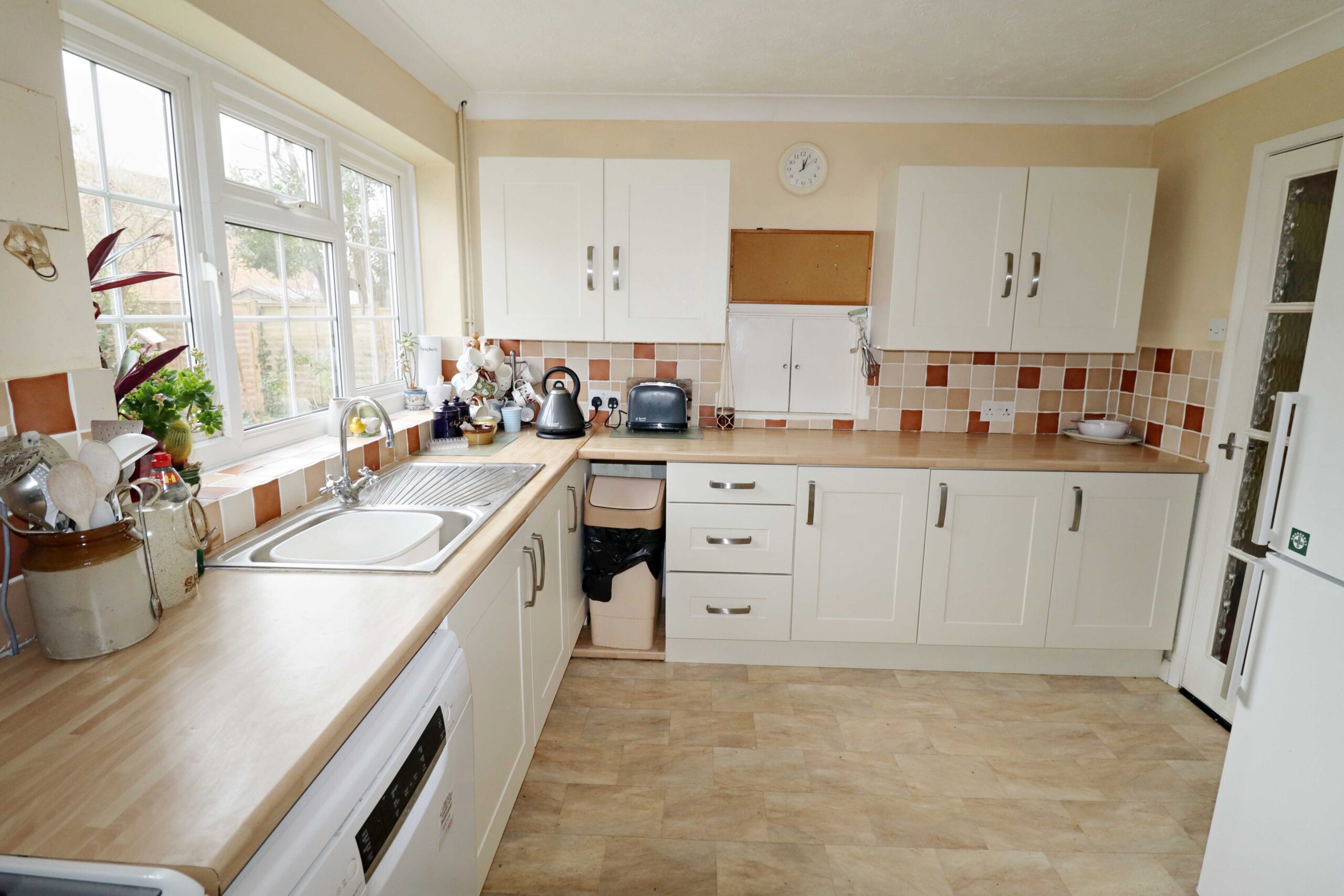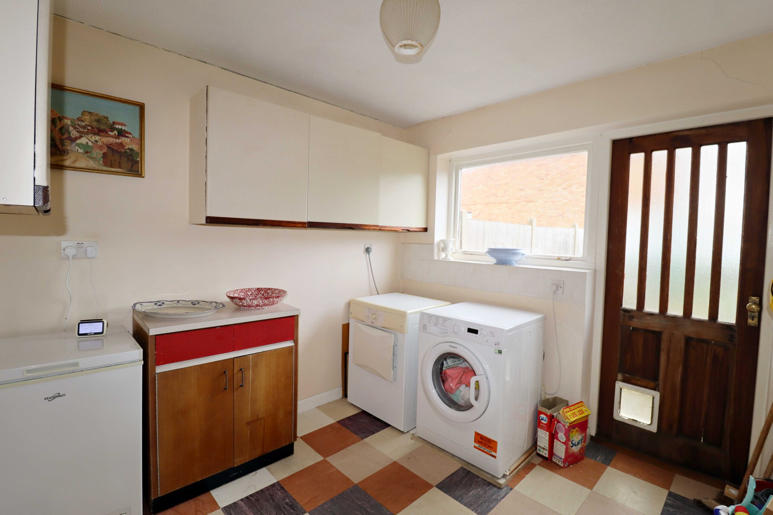 9’5” x 8’9” (2.87m x 2.66m) Space and plumbing for a washing machine. Space for a tumble dryer. Space for a fridge/freezer. Walls part tiled. High level cupboard. Window with pleasant views over the rear garden. Part glazed door to the rear garden. Part glazed door to the workshop.