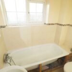 Fitted with a white suite. Low level WC. Pedestal wash hand basin. Bath with telephone style mixer taps and a hand shower. Walls part tiled. Radiator. South facing UPVC double glazed window with obscured glass to the front.