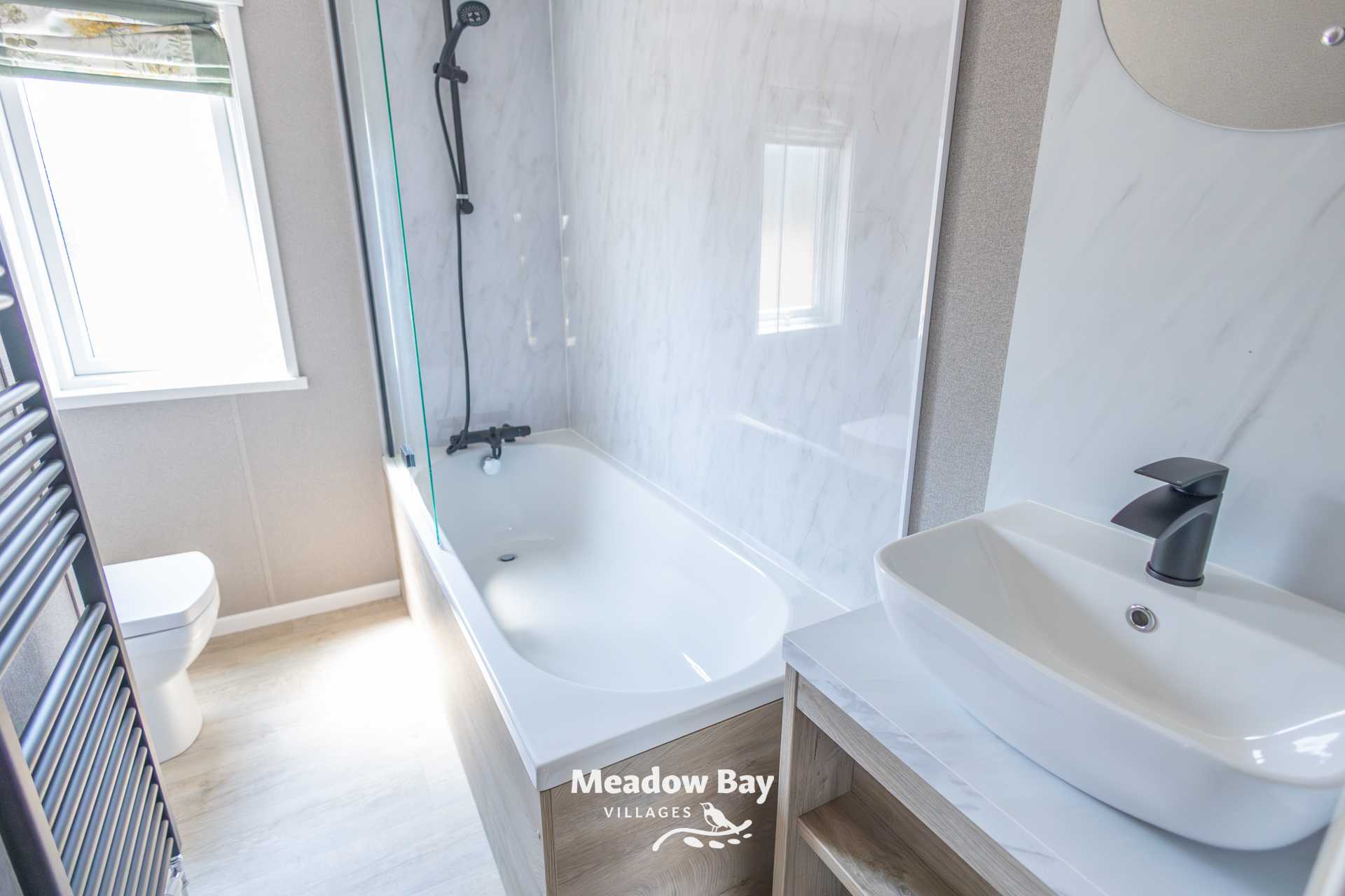 Very well-presented spacious two bedroom ABI Beaumont 42' x 14' park home.  2 bedrooms and 2 bathrooms.  Sleeps 6.  Hot tub, decking and skirting.  Very popular site. Short drive to the Seafront. Lots of features. On site outdoor pool, indoor pool and Jacuzzi, football court, entertainment venue, restaurant and gym. Must be viewed.