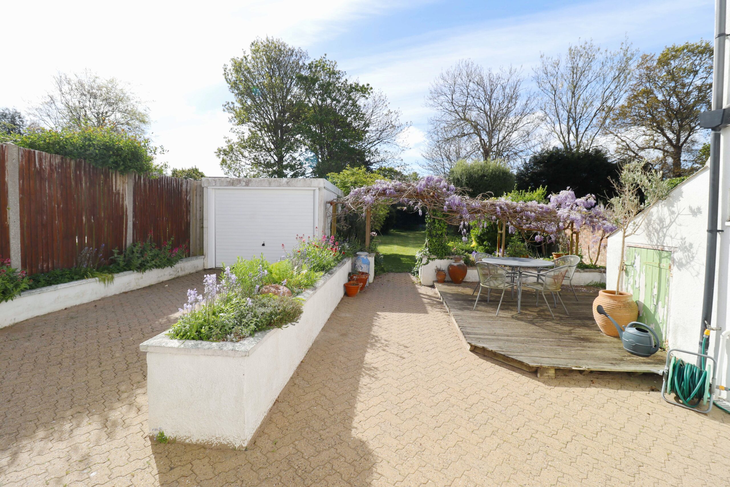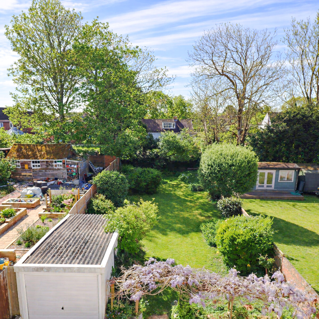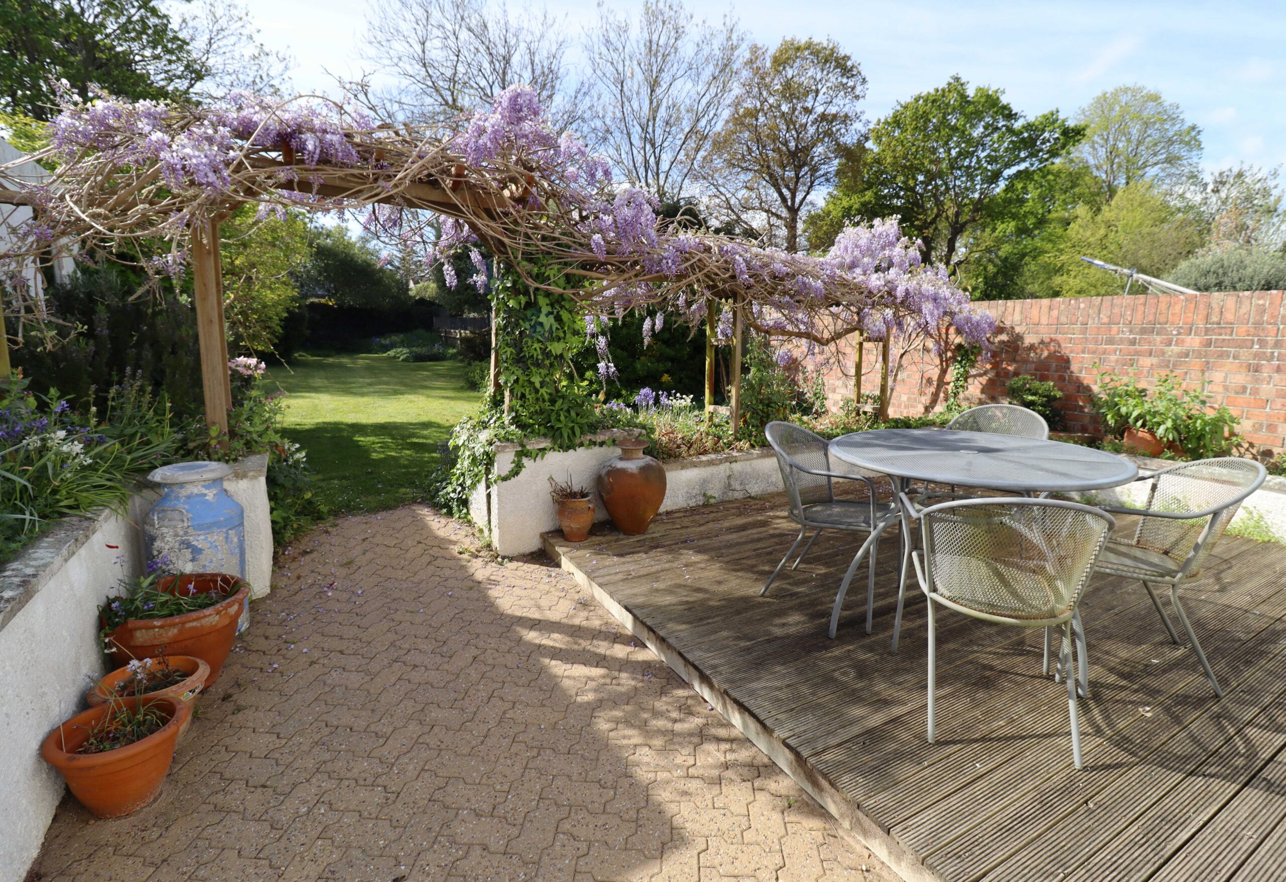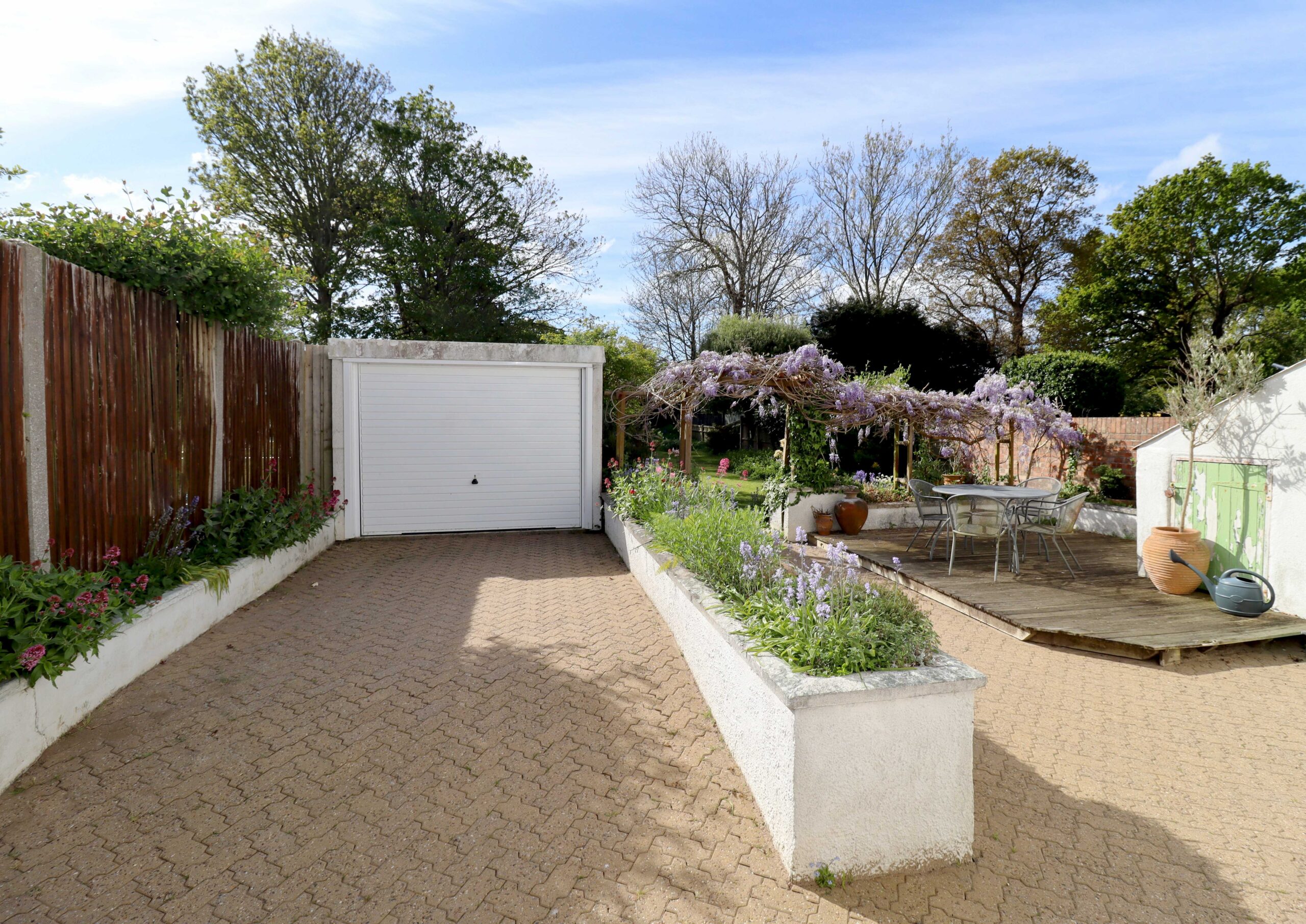 The front garden is brick paved for parking. The large South facing rear garden is laid to lawn. Large brick paved patio area. Raised well-stocked borders. Feature timber pergola. Mature trees, shrubs and bushes. An ideal garden for either children or the keen gardener.