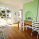 12’7” x 12’ (3.83m x 3.65m) South facing UPVC double glazed French doors to the rear garden. Feature solid oak flooring. Coved ceiling. Inset ceiling spotlights. Display alcove. Telephone point. Two dimmer switches. Wide archway through to:
