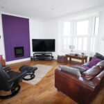 16’7” x 15’5” (5.05m x 4.69m) Three UPVC double glazed windows in a bay to the front. Feature exposed wooden floorboards. Two radiators. Television point. Two fitted cupboards with drawers under. Decorative coved ceiling. Gas point.