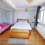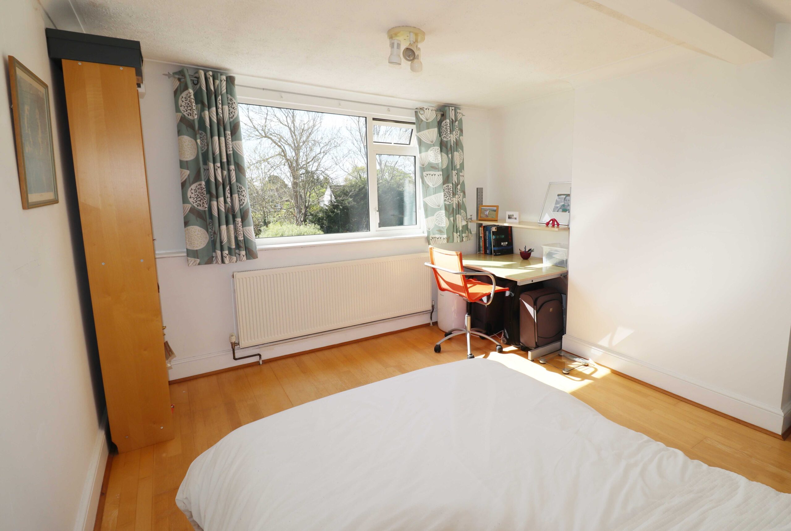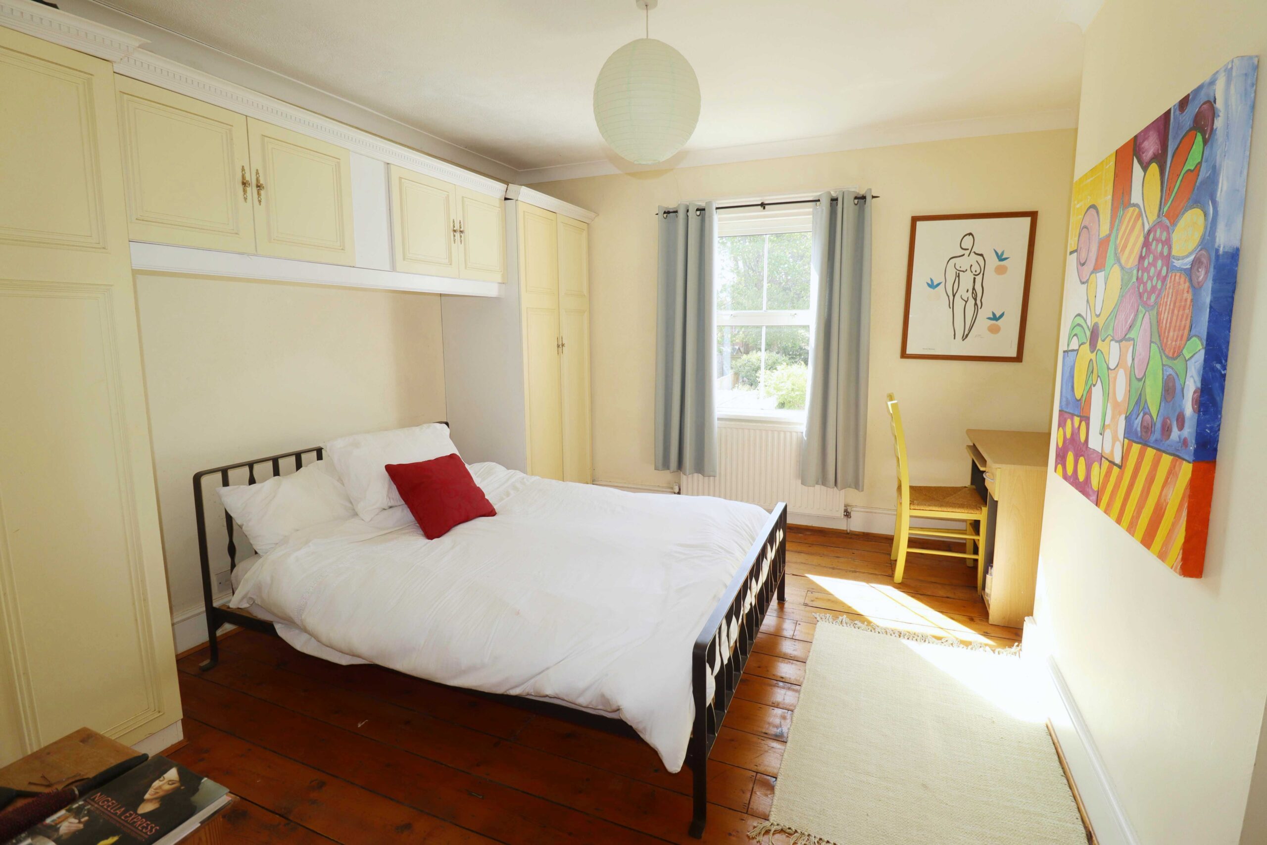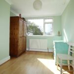 12’6” x 11’10” (3.81m x 3.60m) South facing UPVC double glazed window, (with pleasant views over the rear garden). Coved ceiling. Feature exposed wooden floorboards. Radiator. Range of fitted wardrobes and drawers.