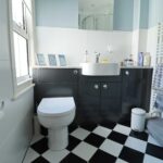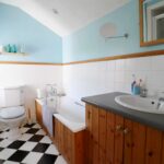 Fitted with a white suite. Low level WC. Wash hand basin. Walls fully tiled. Coved ceiling. Small widow with obscured glass to the side. Ceramic tiled floor.