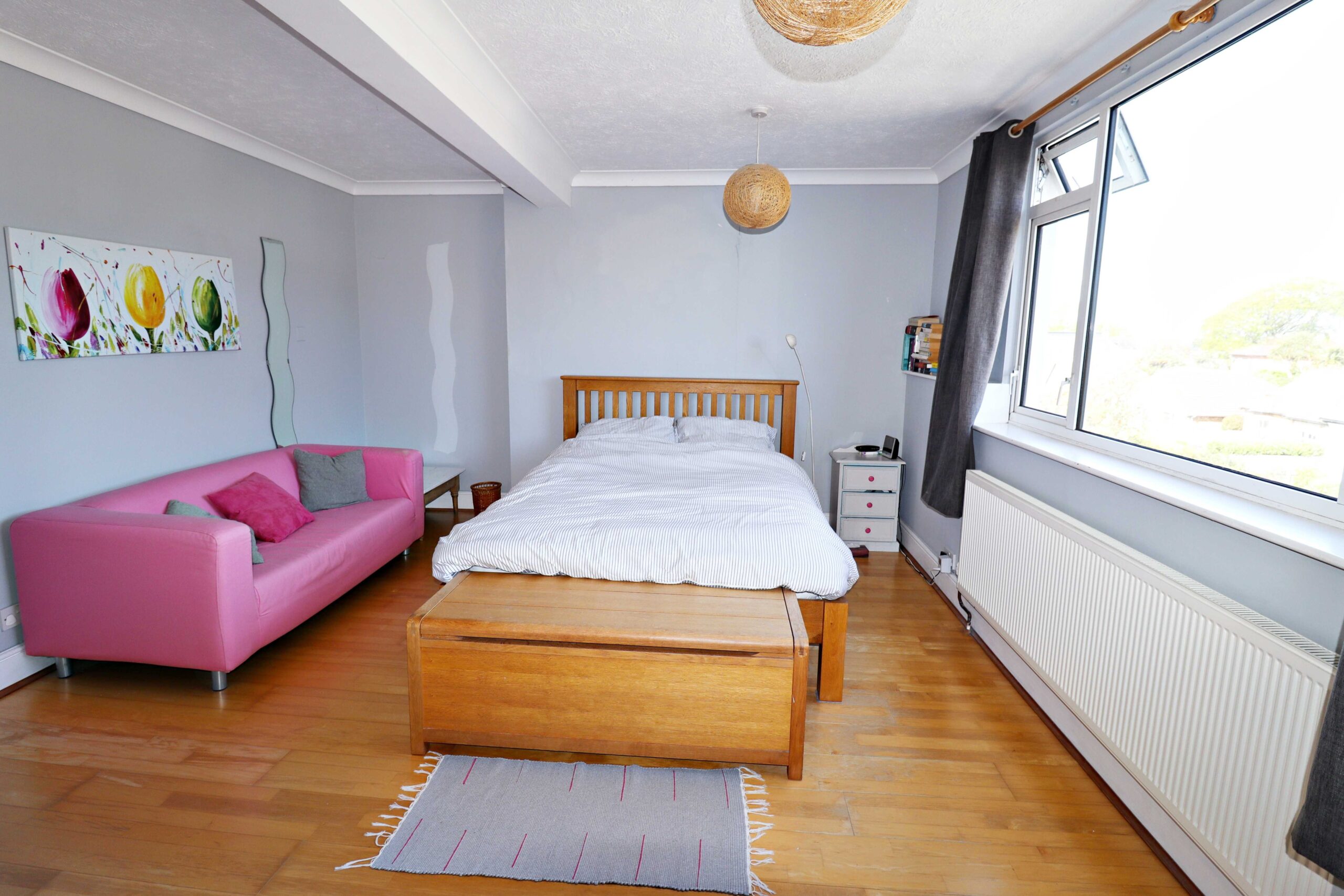 12’9” x 11’9” (3.88m x 3.58m) Wide South facing UPVC double glazed window with pleasant views over the rear garden. Coved ceiling. Radiator. Laminated wood flooring.