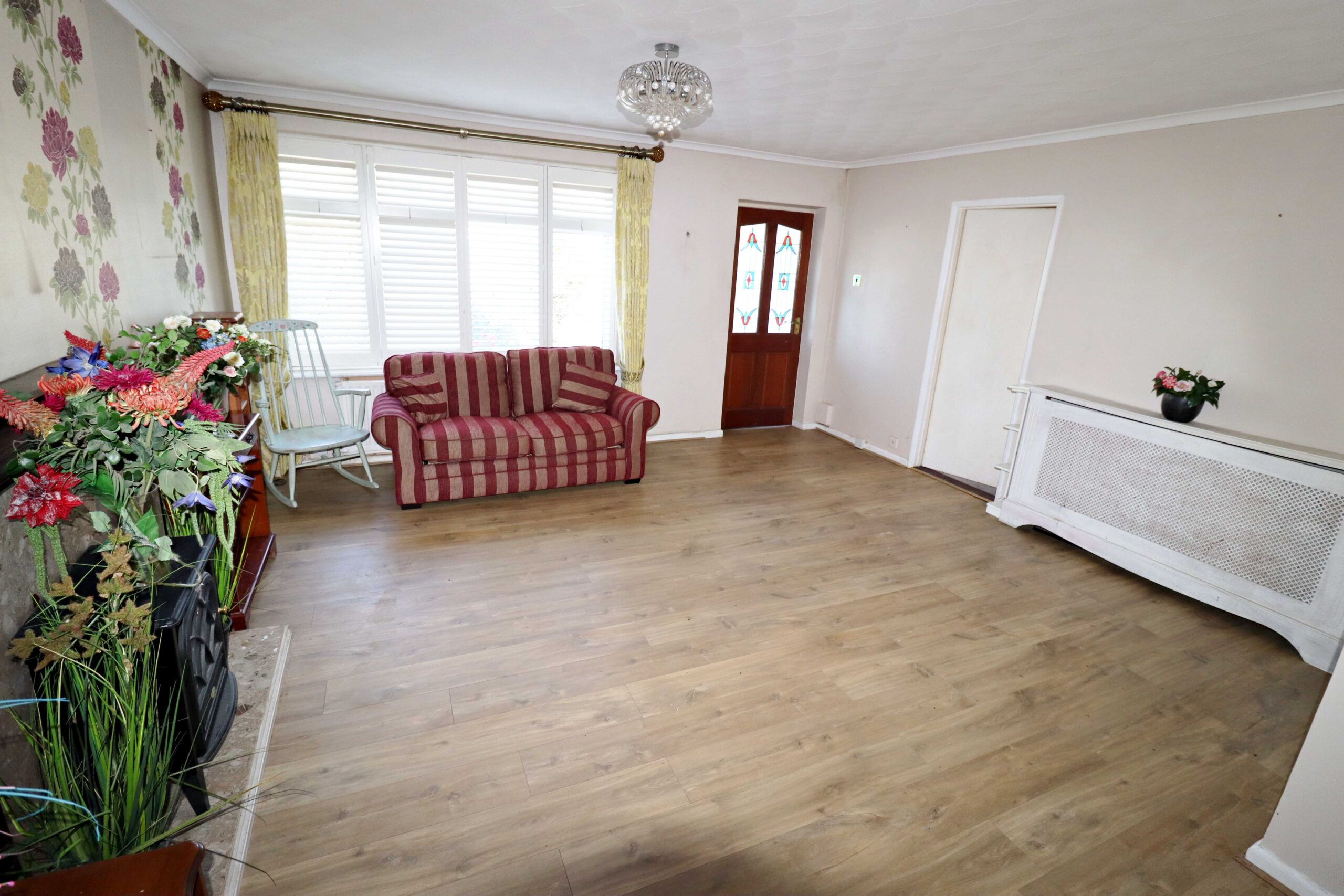 15’3” x 14’ (4.64m x 4.26m) Wide UPVC double glazed window, (with a fitted shutter), to the front. Laminated wood flooring. Coved ceiling. Two radiators. Part glazed door to the hallway. Door to bedroom 3. Television point. Access through to: