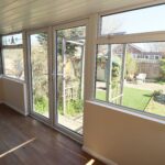 13’8” x 5’5” (4.16m x 1.65m) Six UPVC double glazed windows with pleasant views over the rear garden. UPVC double glazed French doors to the rear garden. Radiator. Laminated wood flooring. Wall light.
