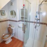 Fitted with an attractive white suite. Low level WC. Feature vanity wash hand basin with mixer taps and cupboards under. Panelled bath with centre mixer taps and a hand shower. Fully tiled shower enclosure with a Mira shower. Walls half tiled. Chrome heated towel/radiator. Inset ceiling spotlights. Extractor. Door to the eaves storage space. UPVC triple glazed window with obscured glass.