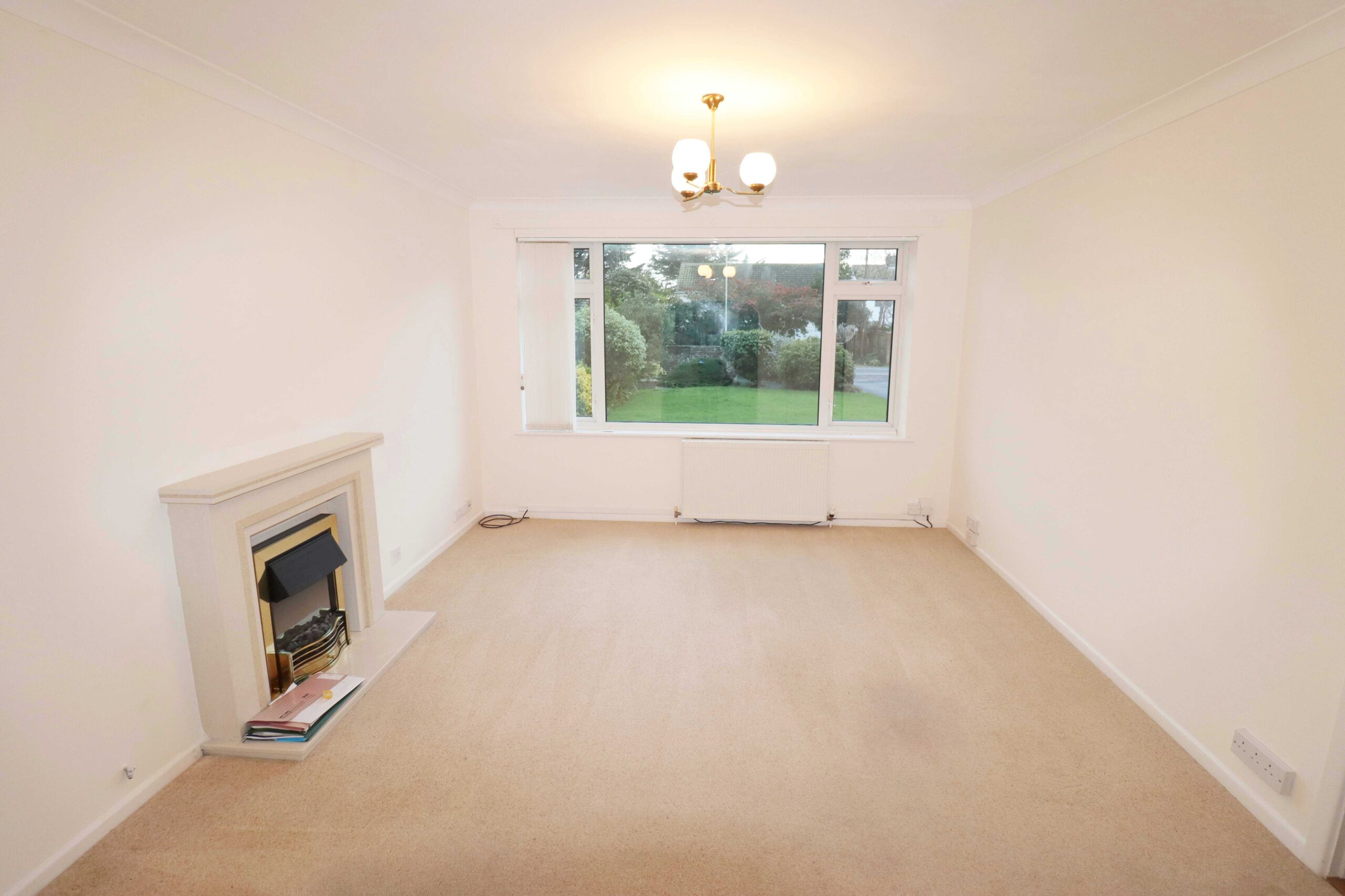 14’6” x 12’ (4.41m x 3.65m) Wide south facing UPVC double glazed window to the front. Radiator. Television point. Telephone point. Coved ceiling. Feature coal effect electric fire with an attractive surround. Dimmer switch. Access through to: