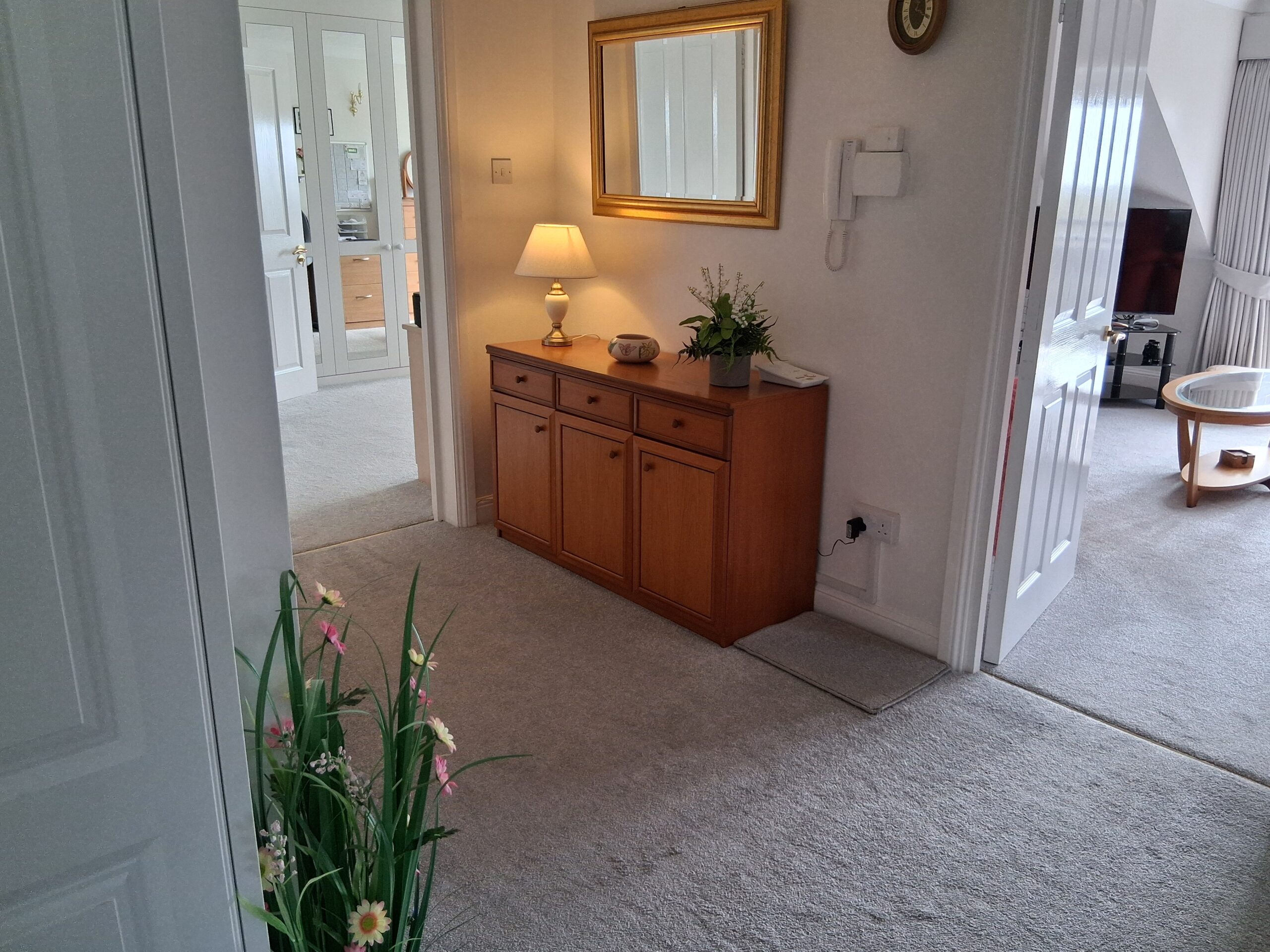 Coved ceiling. Intercom system to the communal front door. Emergency intercom system. Built in airing cupboard which houses the hot water tank, shelving and the water booster pump. Built in cupboard. Built in storage cupboard. Telephone point. Doors leading to: