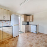 13’9” x 11’10” (4.19m x 3.60m) Fitted on all sides with attractive units. Range of worktops with drawers and cupboards under. Inset one and a quarter bowl single drainer sink unit with mixer taps and a cupboard under. Matching high level cupboards, (with concealed lighting under). Recess with a Creda double oven. Recess with a Zanussi tumble dryer. Recess with a Bosch washing machine. Recess with a Beko fridge / freezer. Walls part tiled. Radiator. Coved ceiling. Wall hung Worcester gas boiler in a matching unit. Space for a kitchen table. Wide UPVC double glazed window to the front. UPVC double glazed door with obscured glass to the side.