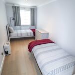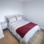 13’4” x 9’9” (4.06m x 2.97m) UPVC double glazed window to the front. Wall hung Haverland electric radiator. Coved ceiling. Laminated wood flooring. Four multi-directional ceiling spotlights. Door to: