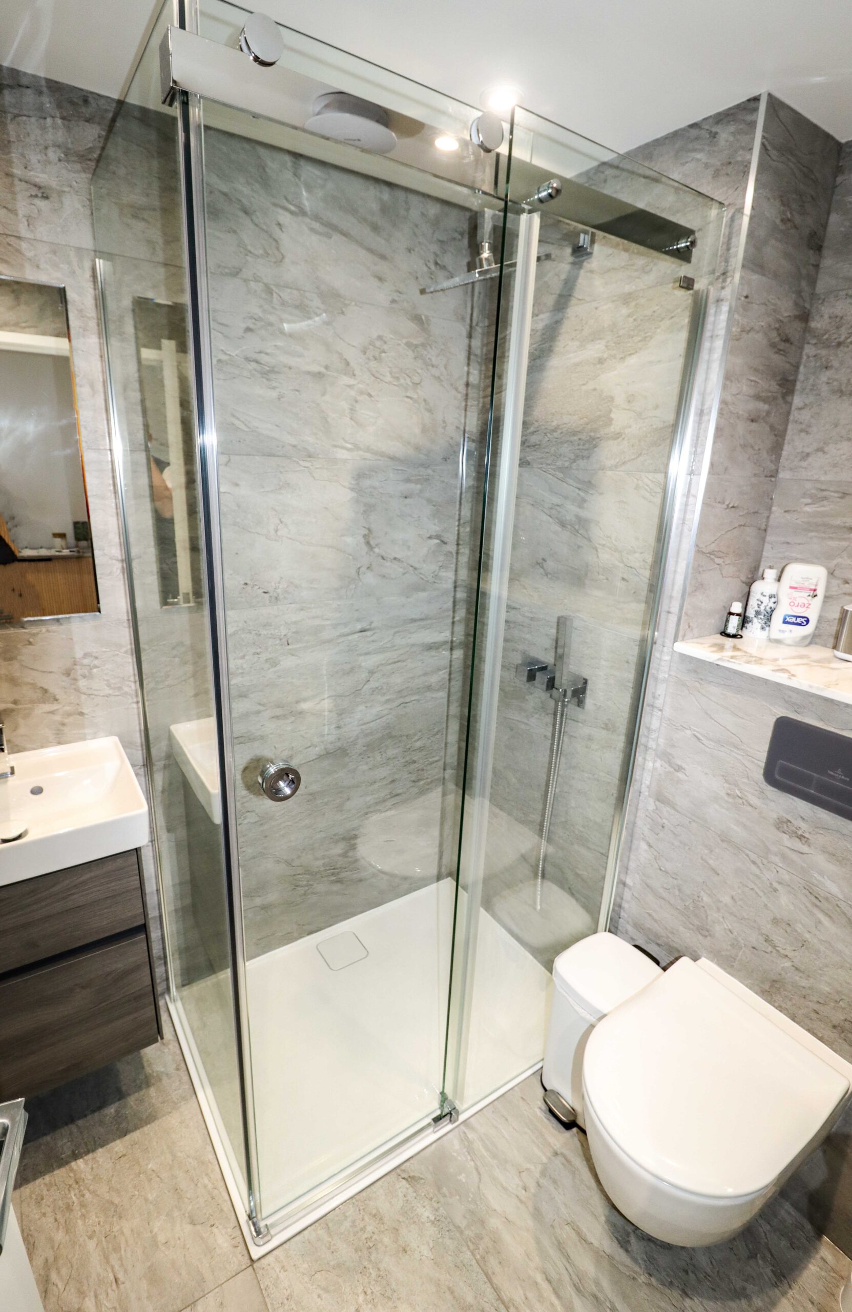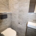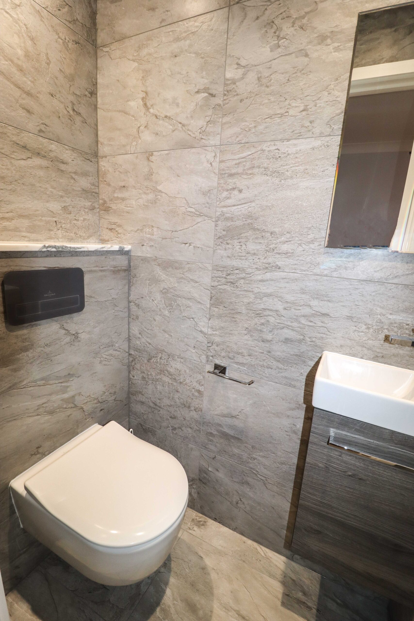 Fitted with an attractive white suite. Low level WC. Feature vanity wash hand basin with mixer taps and a cupboard under. Walls fully tiled. Laminated wood flooring. Extractor. Fitted mirror. Inset ceiling spotlights. Fitted shaver/electric toothbrush charging point.