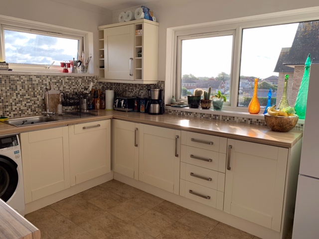 20’ x 19’7” (6.09m x 5.96m) max. South facing UPVC double glazed patio door to your own south facing balcony, (which has excellent seaviews towards the Solent and the Isle of Wight). Wide UPVC double glazed window to the side, (with some pleasant sea views). Coved ceiling. Television point. Two Dimplex night storage heater.
