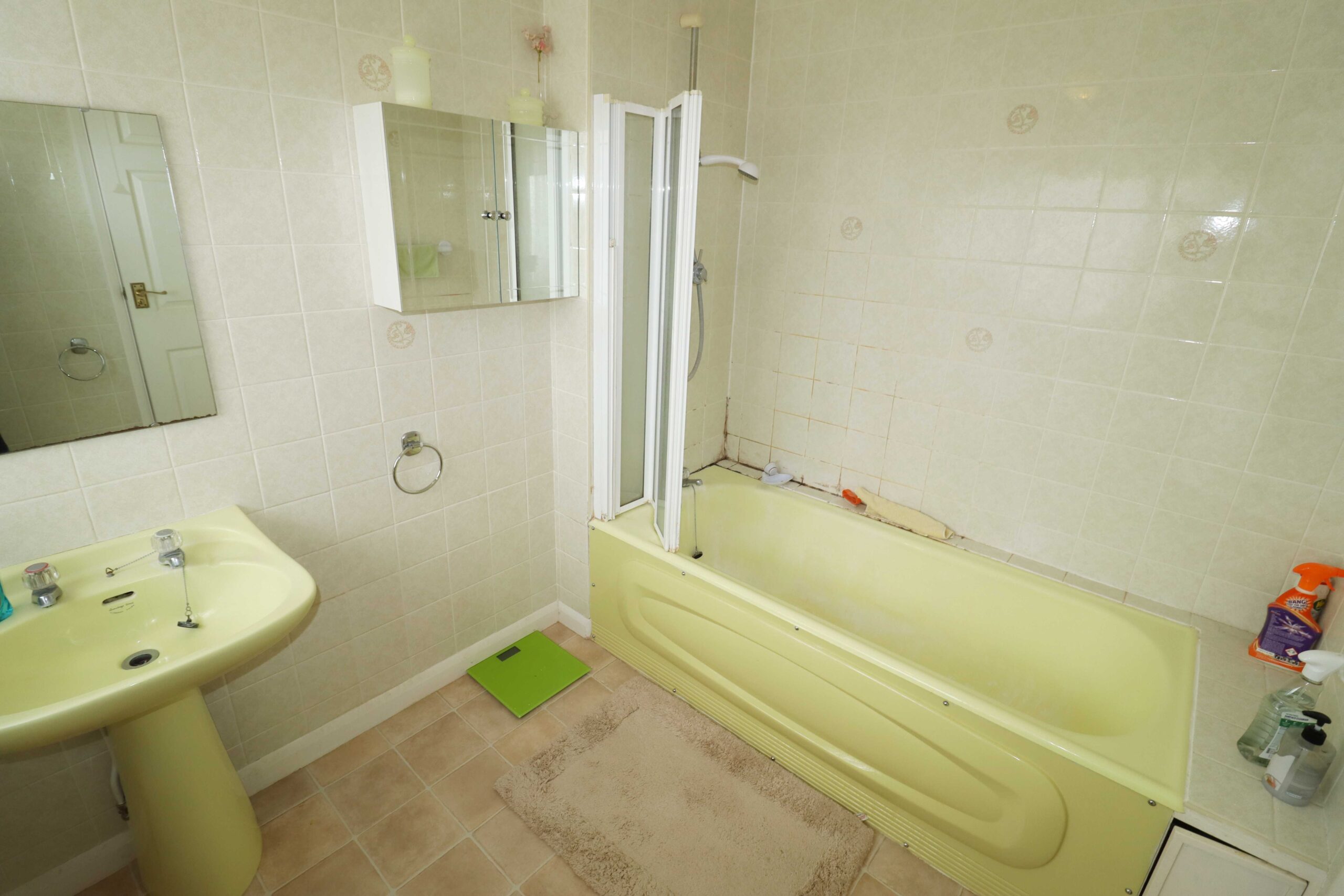 8’2” x 6’6” (2.45m x 2.03m) Pedestal wash hand basin. Panelled bath with a shower over. Side screen. Walls fully tiled. Radiator. Coved ceiling. Shaver point. UPVC double glazed window with obscured glass to the front.