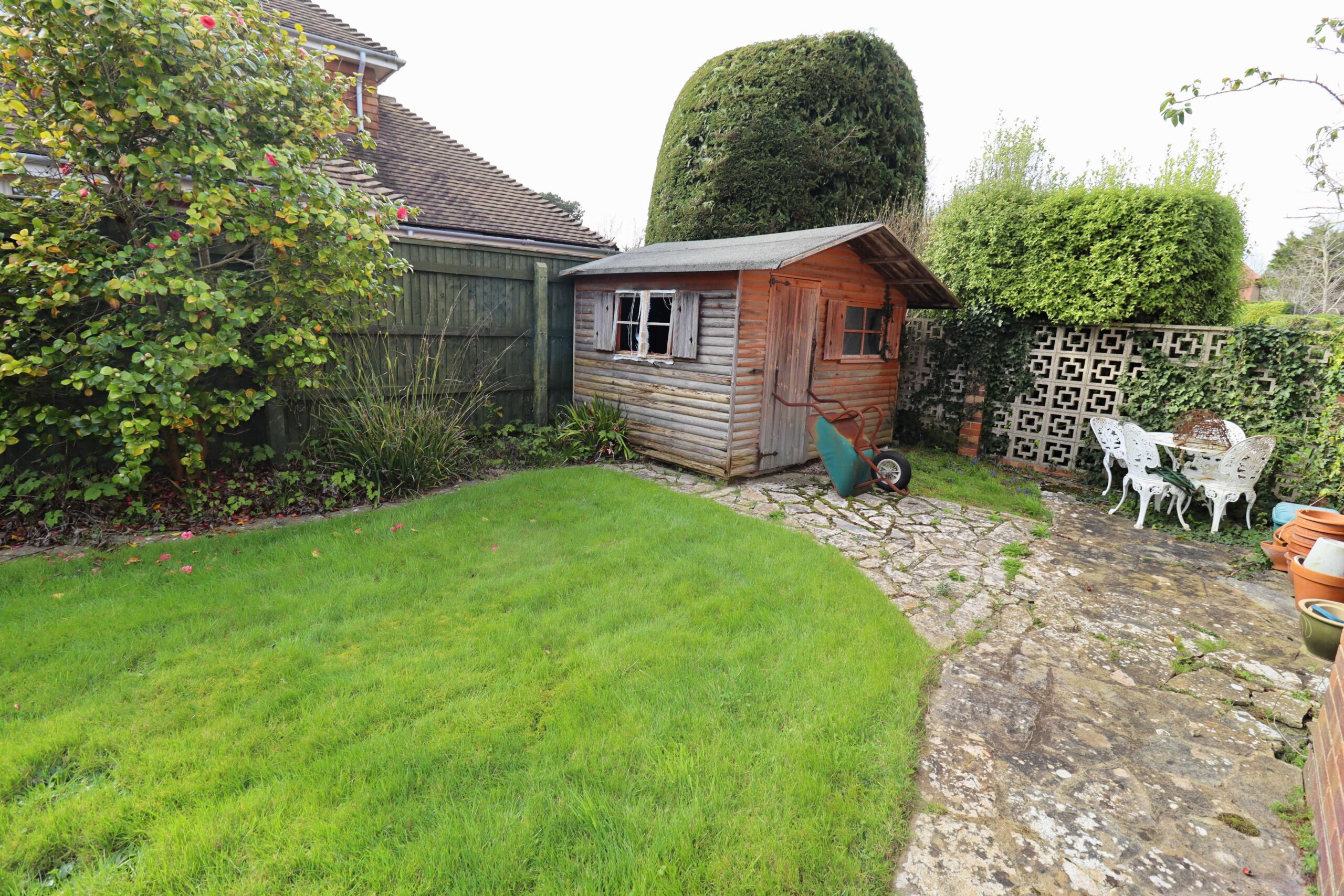 The front garden is laid to lawn with well-stocked borders. The side garden is laid to lawn and has a timber garden shed/summer house. Paved patio area. The rear garden is south facing and laid to lawn. Well-stocked borders. Mature trees, shrubs and bushes. An ideal garden for either children or the keen gardener.