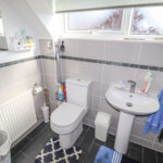 Fitted with an attractive white suite. Low level WC. Feature vanity wash hand basin with mixer taps, splashback tiles and cupboard under. Vertical radiator. UPVC double glazed window with obscured glass to the side.