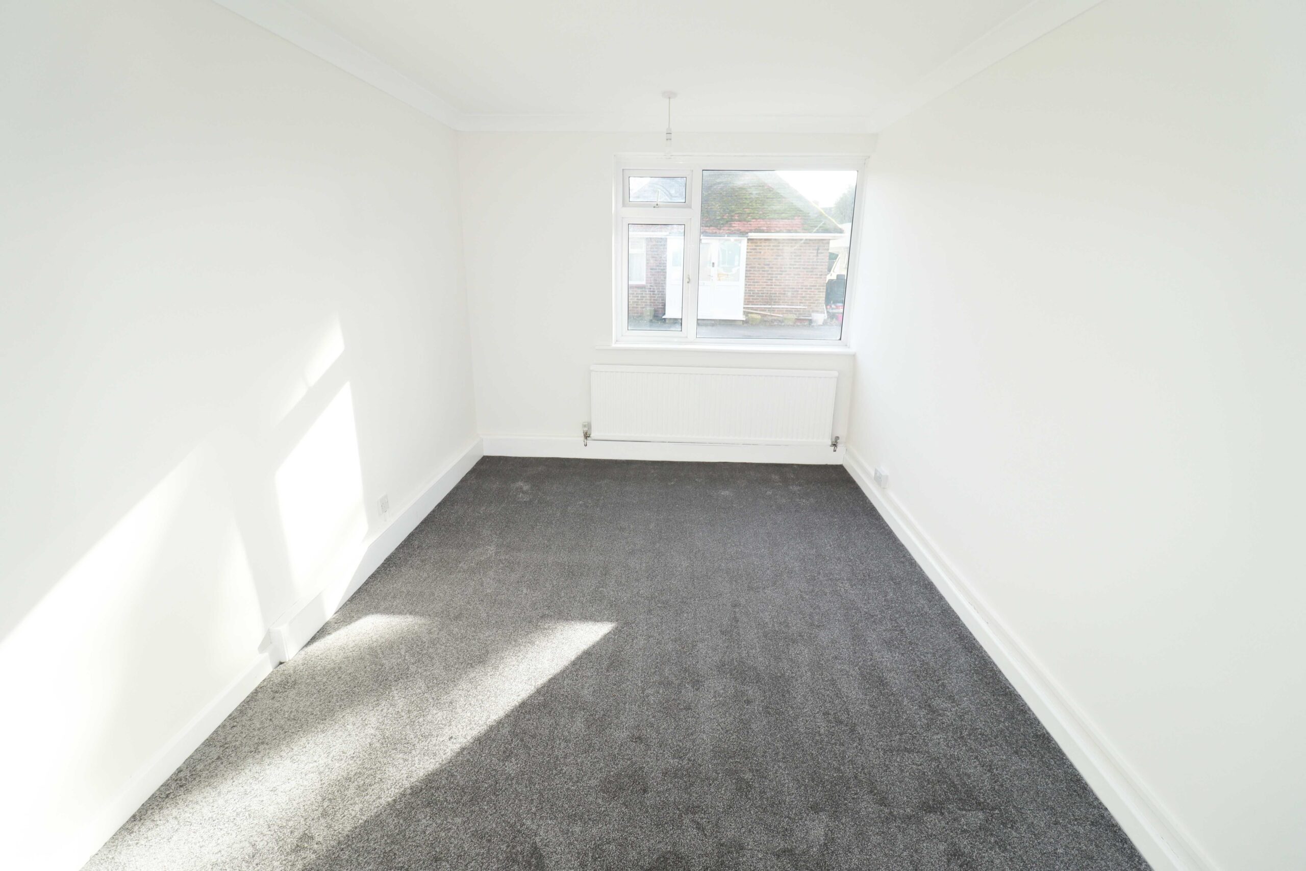 11’4” x 9’9” (3.45m x 2.97m) UPVC double glazed window to the rear, (with pleasant views over the communal gardens). Range of fitted wardrobes. Wall hung Alpha gas boiler in a cupboard. Radiator.