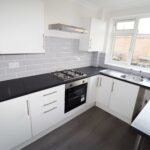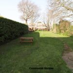 10’10” x 9’10” (3.30m x 2.99m) max. Fitted on three sides with attractive units. Range of worktops with drawers and cupboards under. Inset single drainer stainless steel sink unit with mixer taps and a cupboard under. Matching high level cupboards. Built in Lamona oven with an inset Lamona stainless steel gas hob above. Stainless steel extractor over. Recess with plumbing for a washing machine. Space for a fridge/freezer. Walls part tiled. Coved ceiling. UPVC double glazed window with pleasant views over the communal gardens.